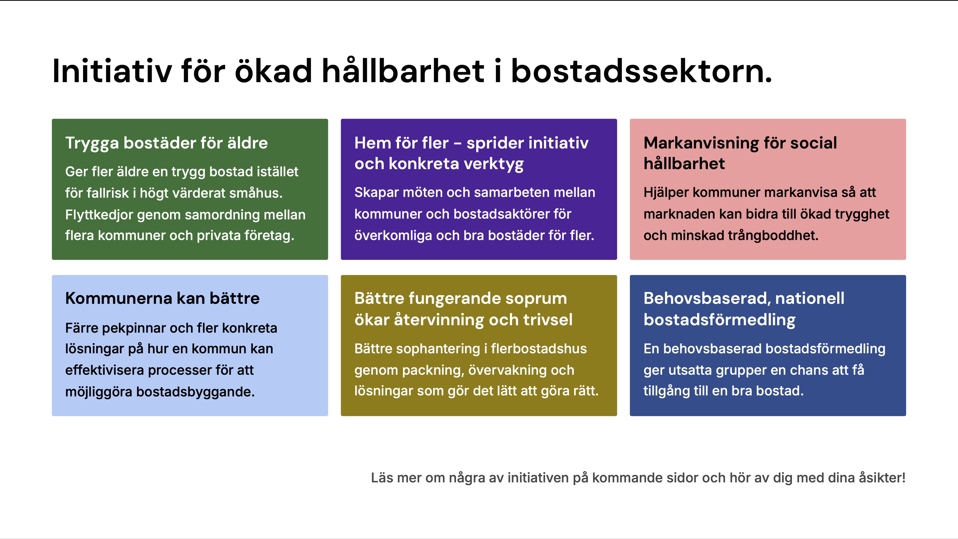 Initiativ för ökad hållbarhet i bostadssektorn.